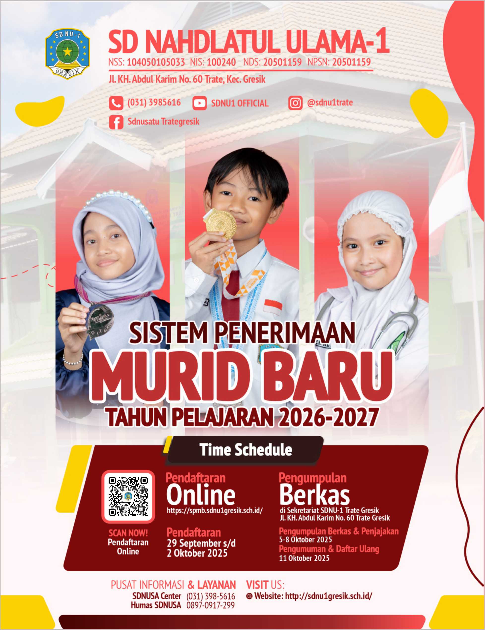 ”Terwujudnya SD NU-1 Trate Gresik sebagai Sekolah Dasar Islam yang handal, berprestasi, berakhlaqul karimah berdasarkan imtaq dan iptek, berorientasi masa depan yang berwawasan Pancasila serta cinta lingkungan.”